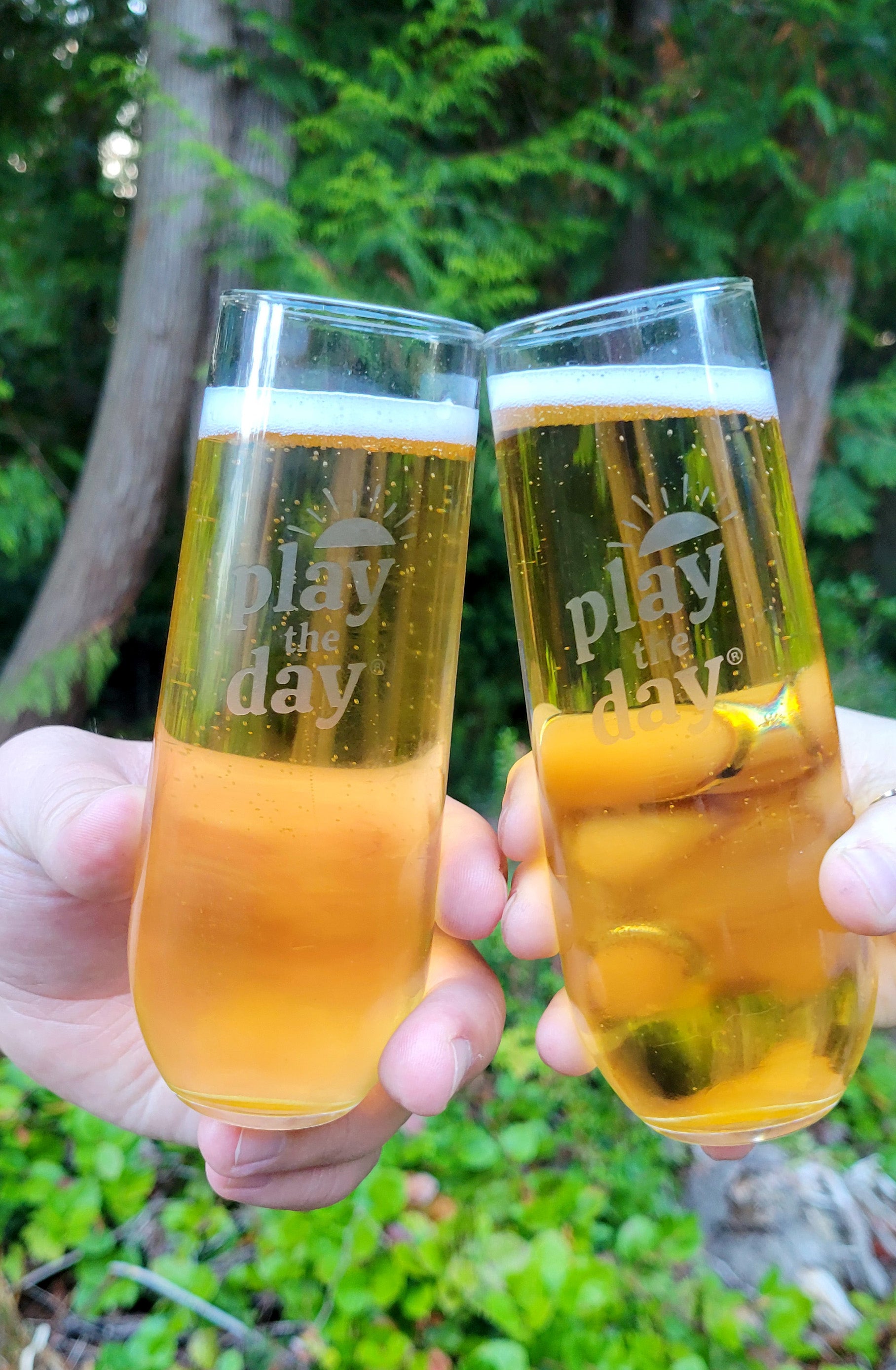 Celebrate the joy in the journey with this set of two 8 oz stemless glass flutes, deep-etched with our Play the Day® logo. Whether it’s a bubbly toast on New Year's Eve or a quiet toast to yourself, these champagne flutes offer elegance with a touch of encouragement.